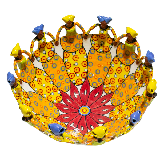 These bowls are wheel thrown from stoneware clay with skill and care. The Zizamele artists then create hand-modelled African women figures in clay, which they attach painstakingly to the rim of the bowl. After the bowls are fired in electric kilns, they are painted in Africa's vibrant patterns and colours in a variety of stunning glazes.