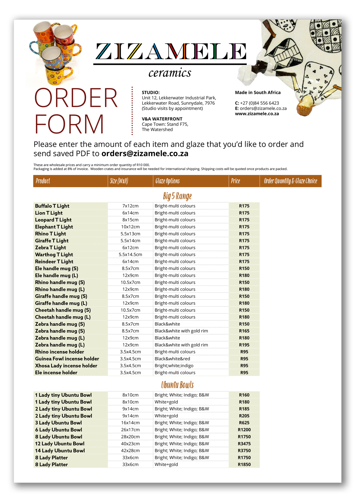 These are wholesale prices and carry a minimum order quantity of R10 000.